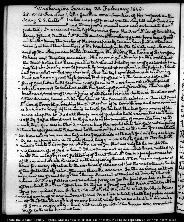 View full, authoritative transcriptions with page images of the diaries at John Quincy Adams Digital Diary part of the Primary Source Cooperative at the MHS.