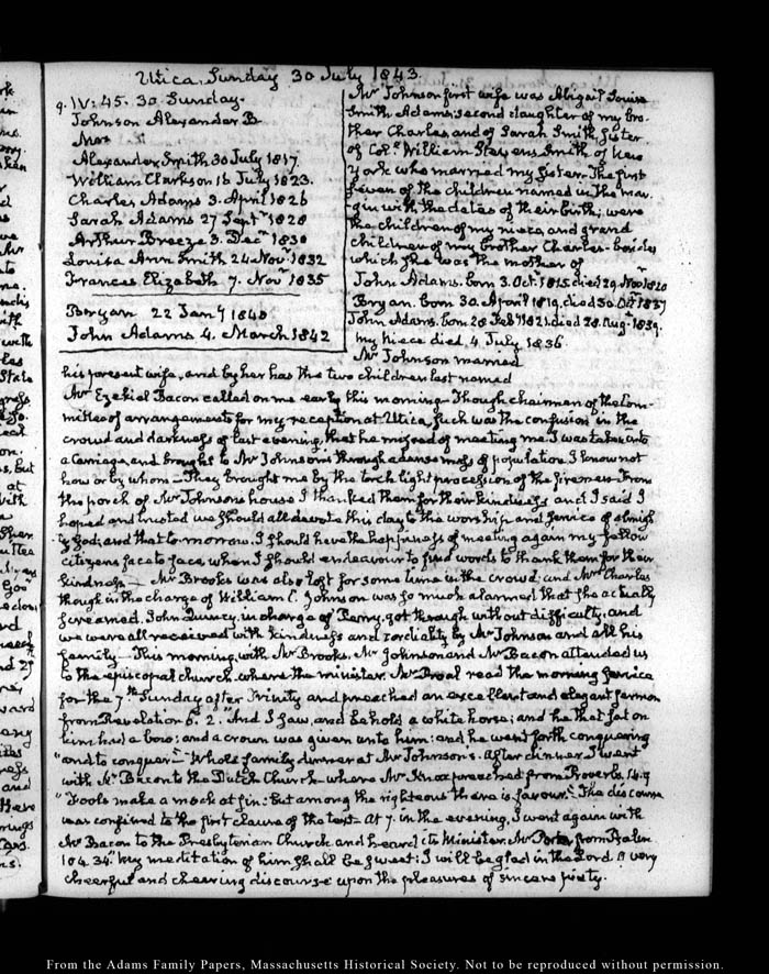 View full, authoritative transcriptions with page images of the diaries at John Quincy Adams Digital Diary part of the Primary Source Cooperative at the MHS.