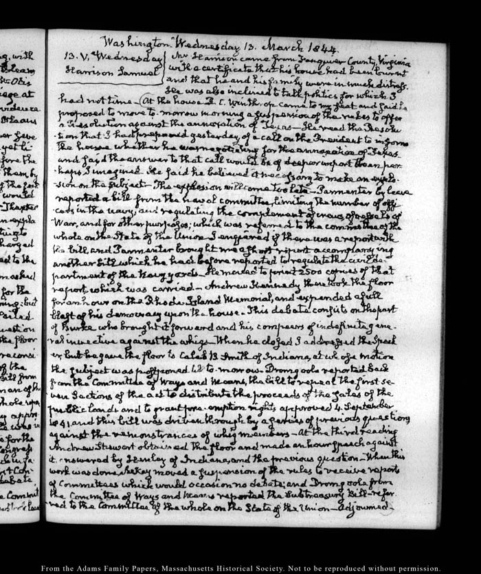 View full, authoritative transcriptions with page images of the diaries at John Quincy Adams Digital Diary part of the Primary Source Cooperative at the MHS.