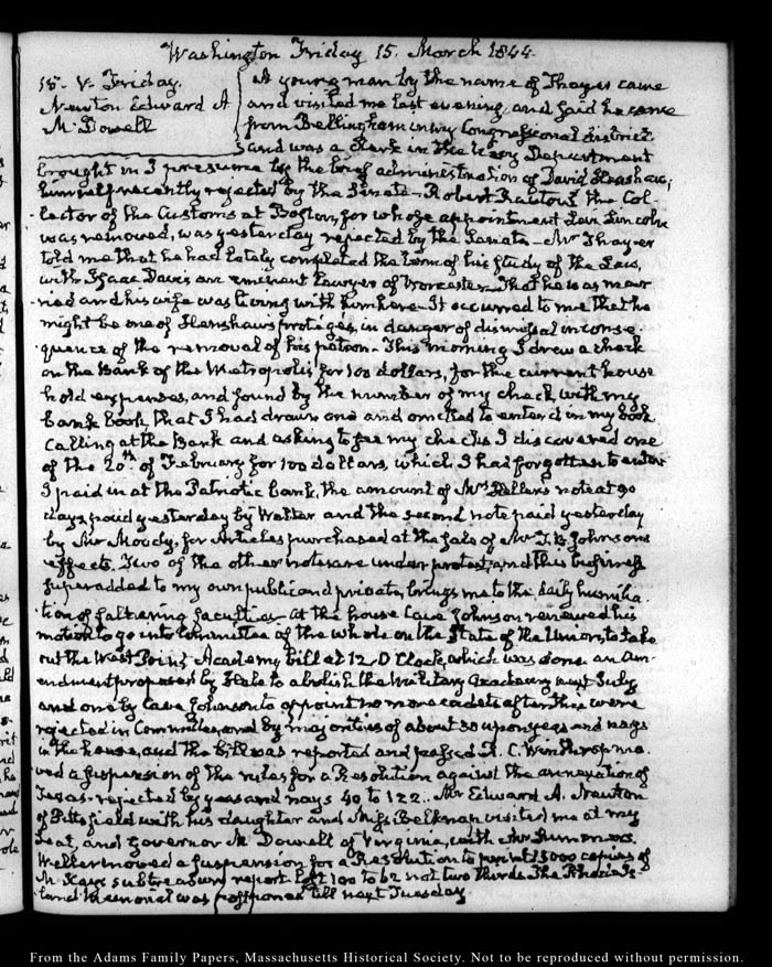 View full, authoritative transcriptions with page images of the diaries at John Quincy Adams Digital Diary part of the Primary Source Cooperative at the MHS.