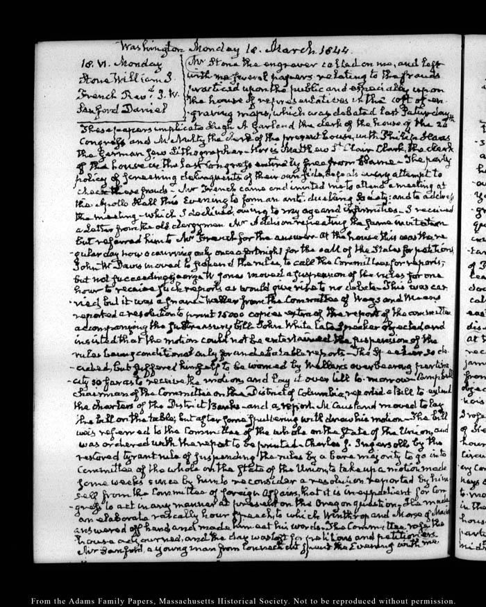 View full, authoritative transcriptions with page images of the diaries at John Quincy Adams Digital Diary part of the Primary Source Cooperative at the MHS.