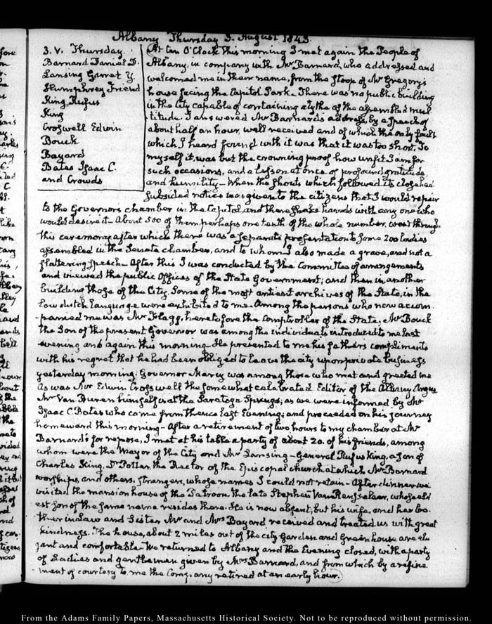 View full, authoritative transcriptions with page images of the diaries at John Quincy Adams Digital Diary part of the Primary Source Cooperative at the MHS.