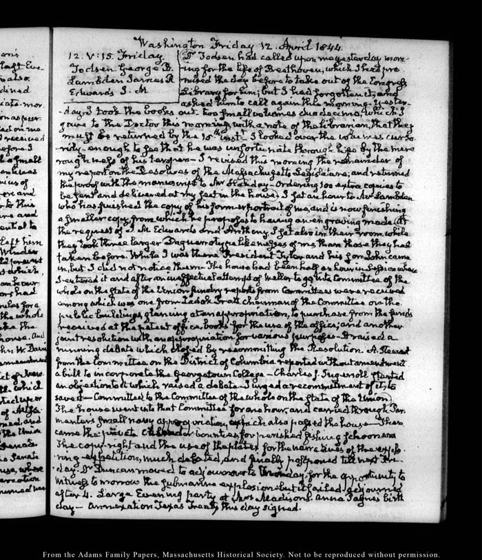This is our legacy JQA diaries website and allows researchers to view the physical diaries page-by-page.