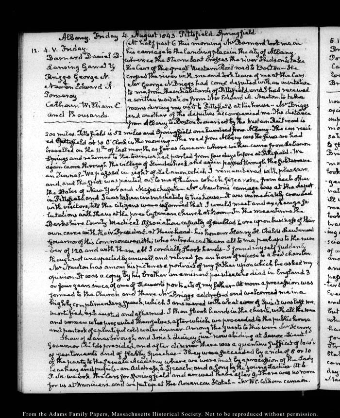 View full, authoritative transcriptions with page images of the diaries at John Quincy Adams Digital Diary part of the Primary Source Cooperative at the MHS.