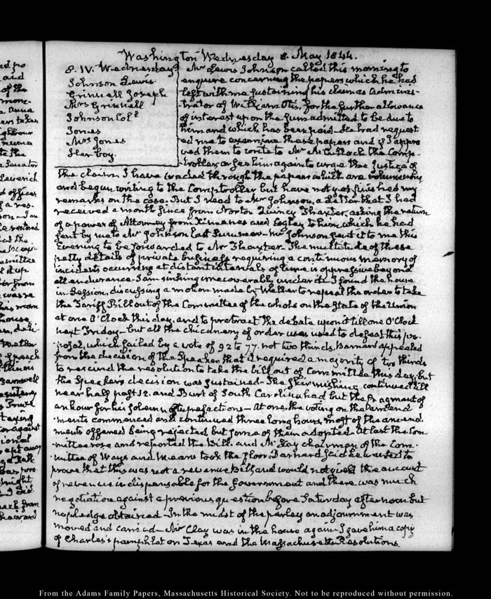 View full, authoritative transcriptions with page images of the diaries at John Quincy Adams Digital Diary part of the Primary Source Cooperative at the MHS.
