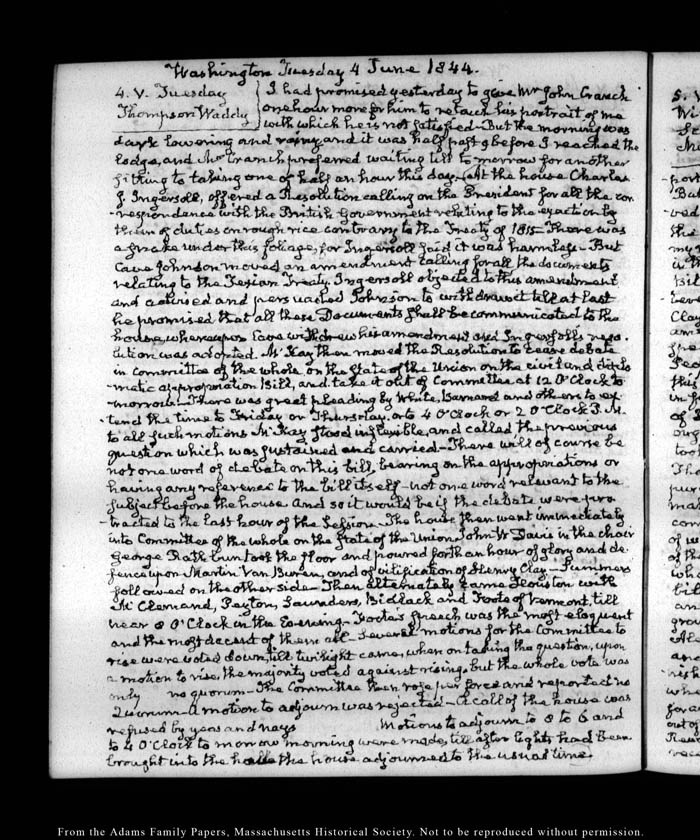 View full, authoritative transcriptions with page images of the diaries at John Quincy Adams Digital Diary part of the Primary Source Cooperative at the MHS.
