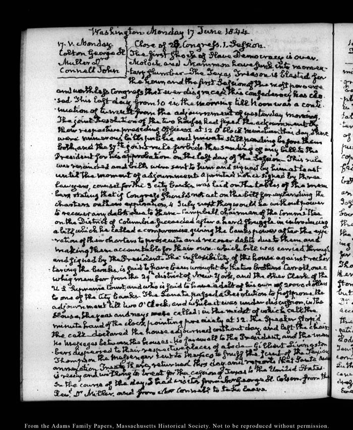 View full, authoritative transcriptions with page images of the diaries at John Quincy Adams Digital Diary part of the Primary Source Cooperative at the MHS.