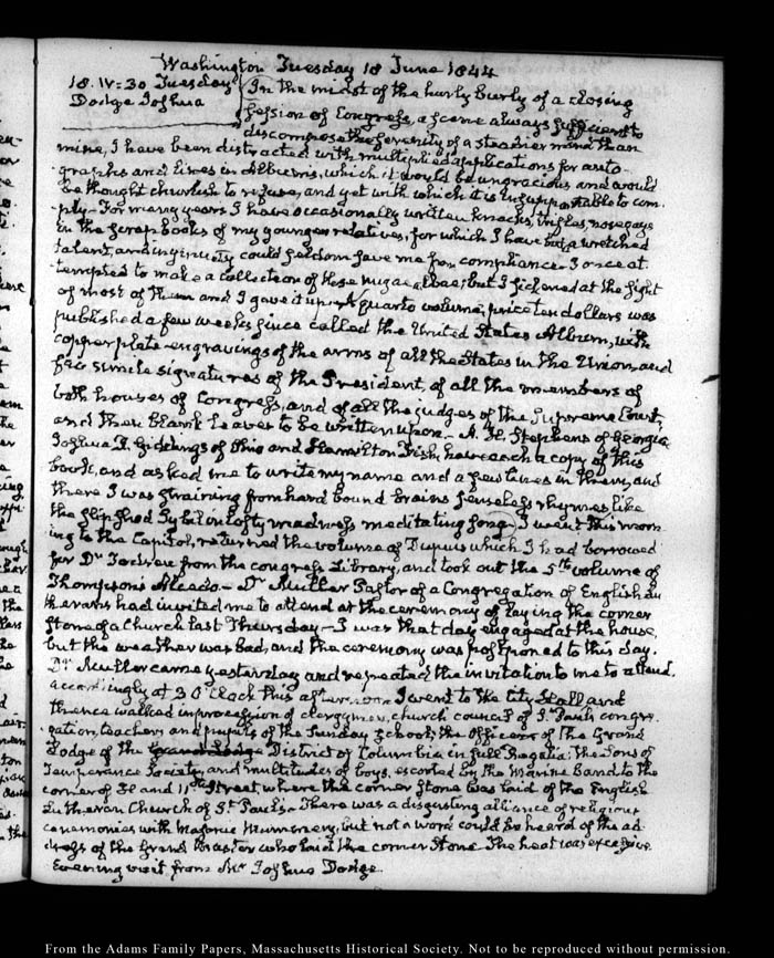View full, authoritative transcriptions with page images of the diaries at John Quincy Adams Digital Diary part of the Primary Source Cooperative at the MHS.
