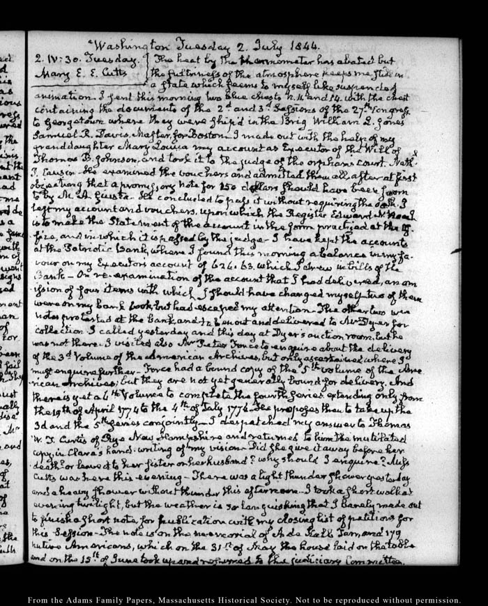 View full, authoritative transcriptions with page images of the diaries at John Quincy Adams Digital Diary part of the Primary Source Cooperative at the MHS.