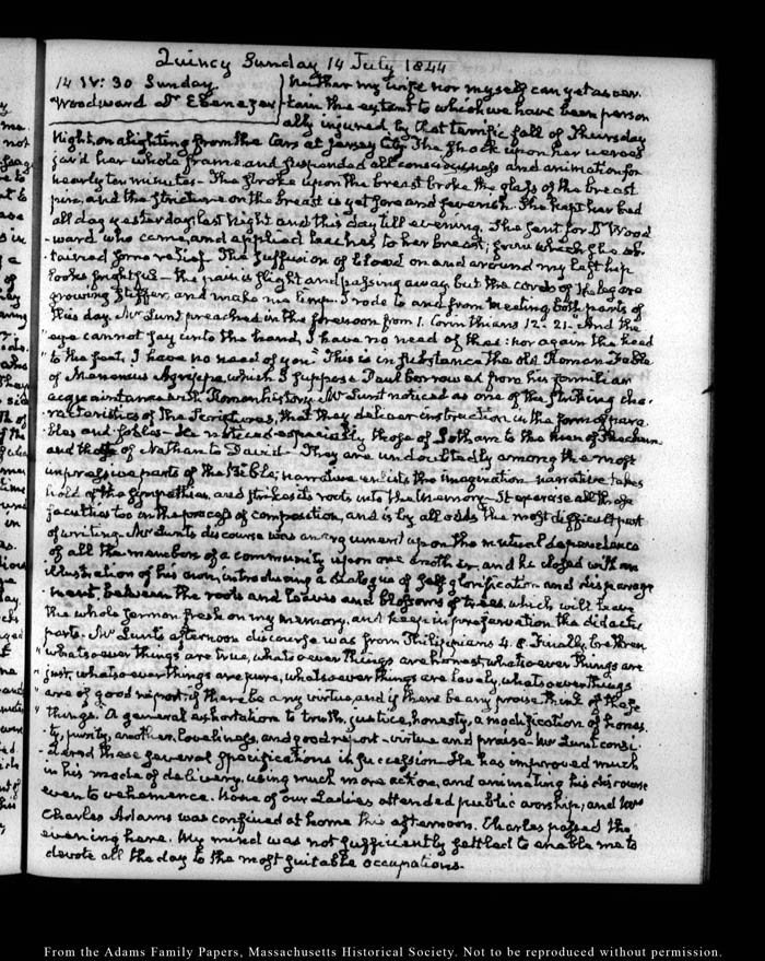 View full, authoritative transcriptions with page images of the diaries at John Quincy Adams Digital Diary part of the Primary Source Cooperative at the MHS.