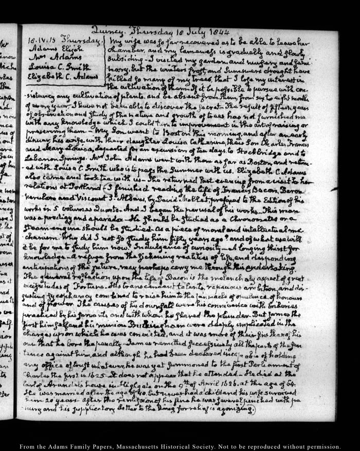 View full, authoritative transcriptions with page images of the diaries at John Quincy Adams Digital Diary part of the Primary Source Cooperative at the MHS.