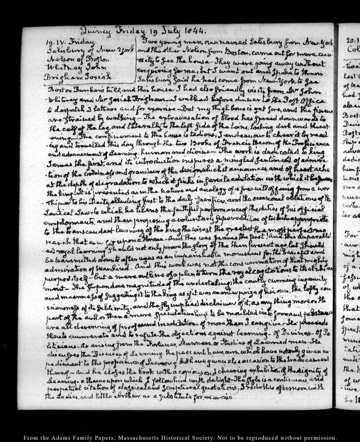 View full, authoritative transcriptions with page images of the diaries at John Quincy Adams Digital Diary part of the Primary Source Cooperative at the MHS.