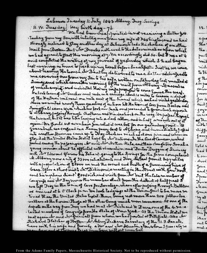 View full, authoritative transcriptions with page images of the diaries at John Quincy Adams Digital Diary part of the Primary Source Cooperative at the MHS.