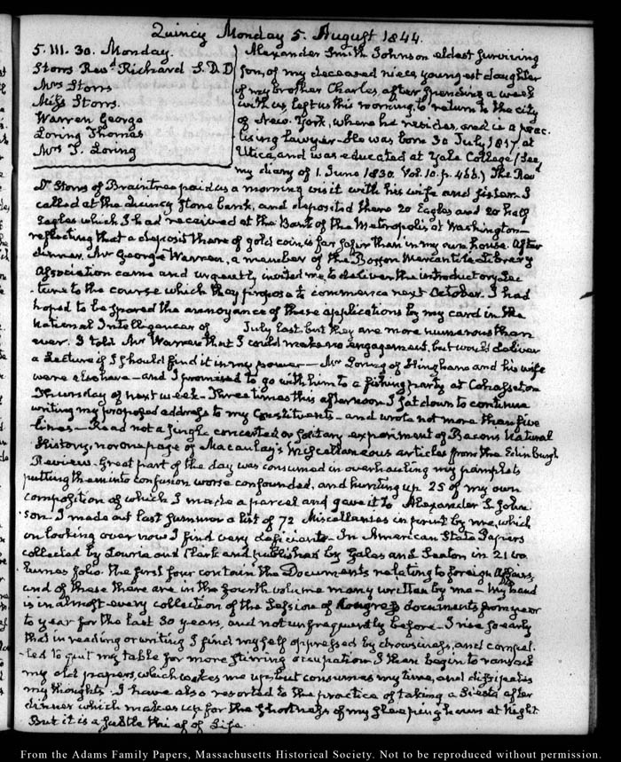 View full, authoritative transcriptions with page images of the diaries at John Quincy Adams Digital Diary part of the Primary Source Cooperative at the MHS.