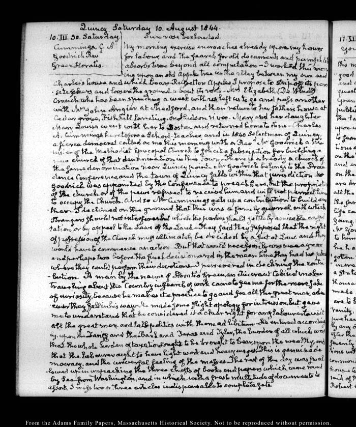 View full, authoritative transcriptions with page images of the diaries at John Quincy Adams Digital Diary part of the Primary Source Cooperative at the MHS.