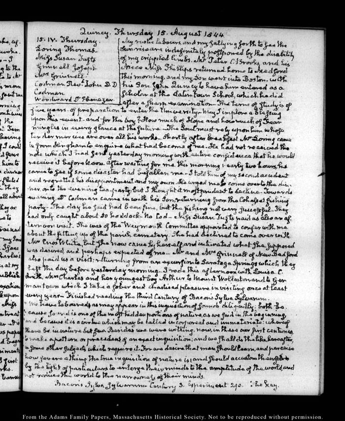 View full, authoritative transcriptions with page images of the diaries at John Quincy Adams Digital Diary part of the Primary Source Cooperative at the MHS.