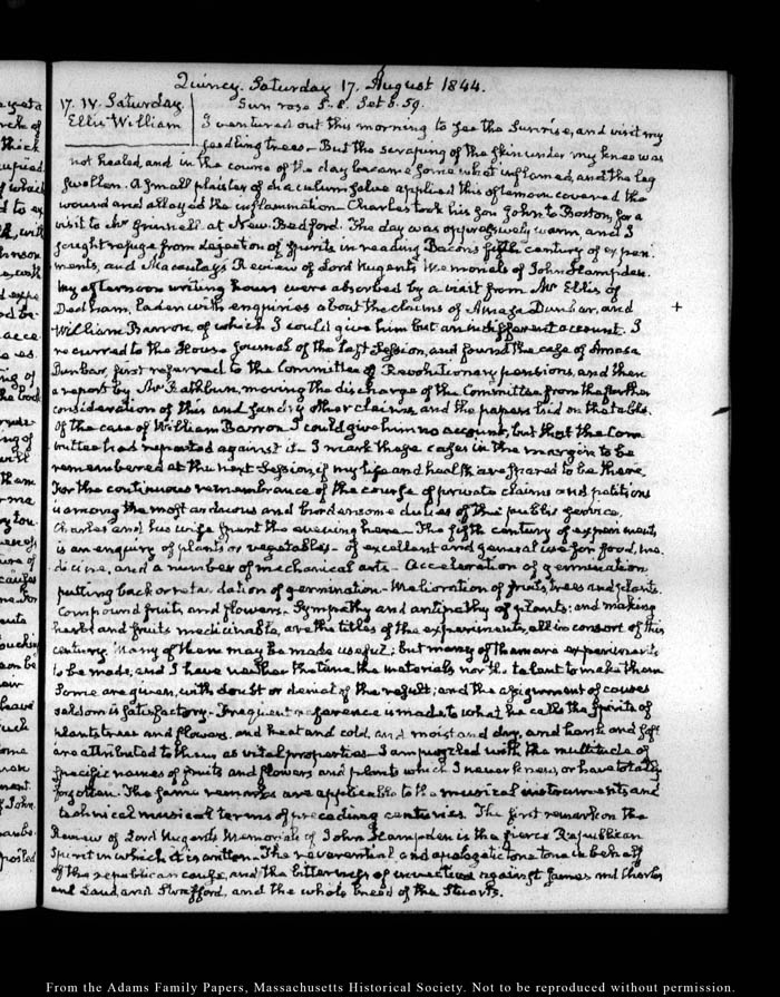 View full, authoritative transcriptions with page images of the diaries at John Quincy Adams Digital Diary part of the Primary Source Cooperative at the MHS.