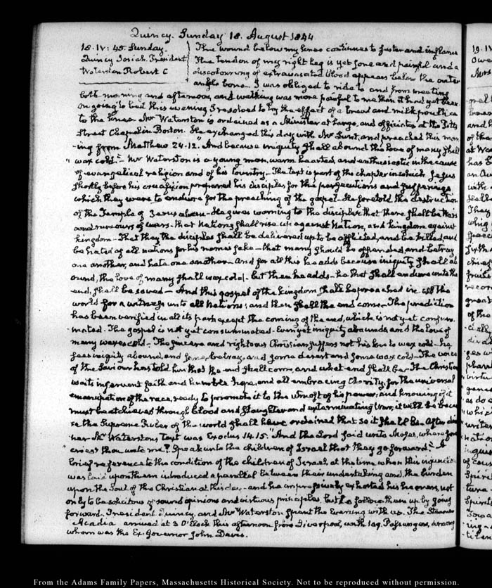 View full, authoritative transcriptions with page images of the diaries at John Quincy Adams Digital Diary part of the Primary Source Cooperative at the MHS.