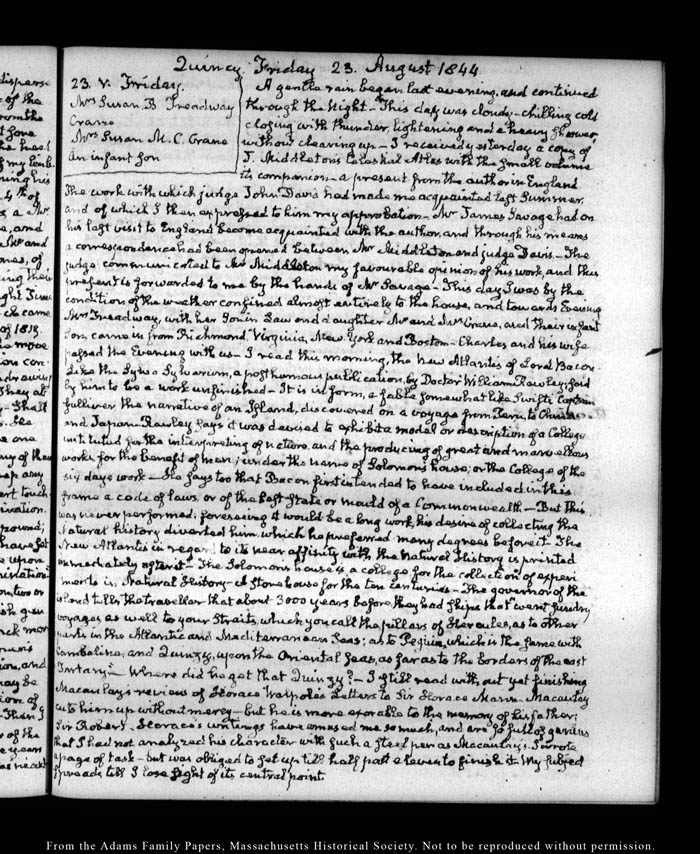 This is our legacy JQA diaries website and allows researchers to view the physical diaries page-by-page.