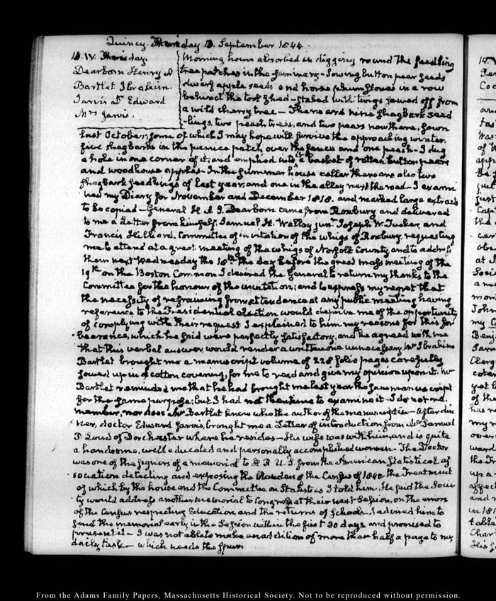 View full, authoritative transcriptions with page images of the diaries at John Quincy Adams Digital Diary part of the Primary Source Cooperative at the MHS.