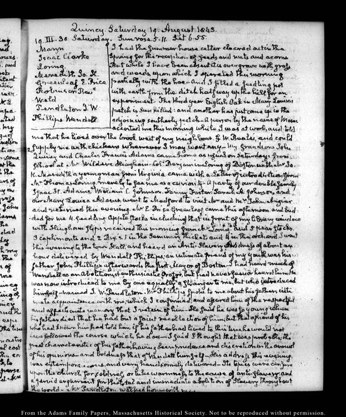 View full, authoritative transcriptions with page images of the diaries at John Quincy Adams Digital Diary part of the Primary Source Cooperative at the MHS.