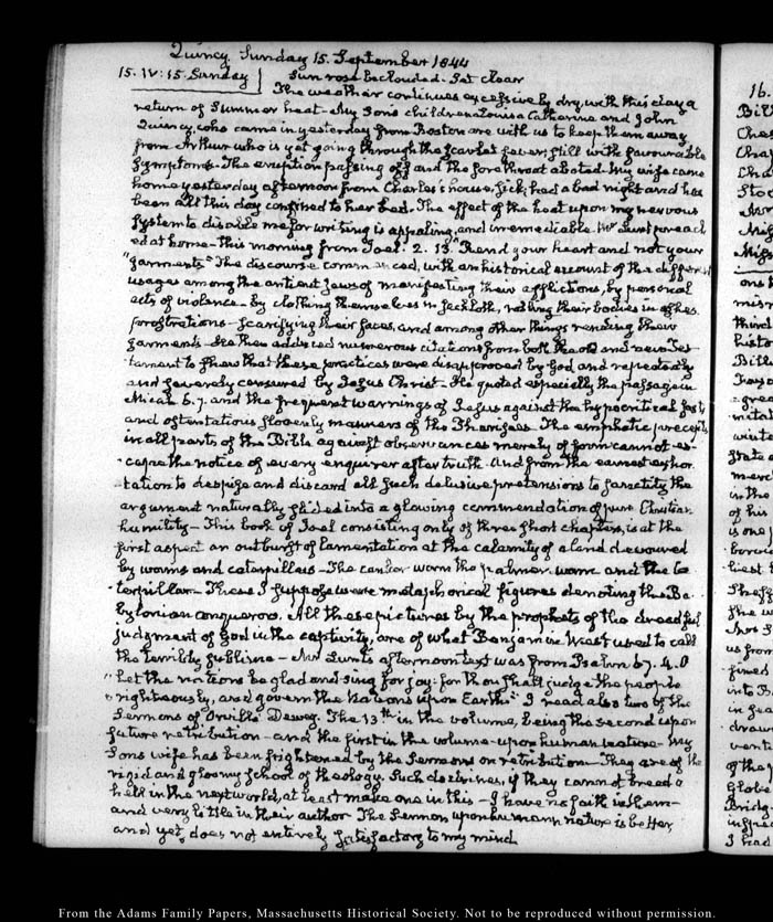 View full, authoritative transcriptions with page images of the diaries at John Quincy Adams Digital Diary part of the Primary Source Cooperative at the MHS.