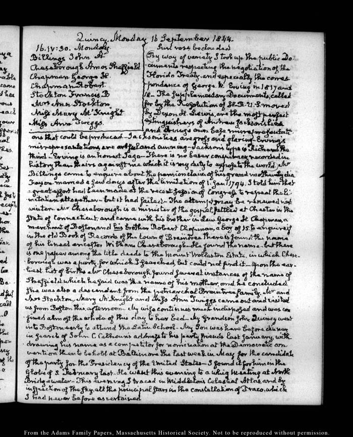 View full, authoritative transcriptions with page images of the diaries at John Quincy Adams Digital Diary part of the Primary Source Cooperative at the MHS.