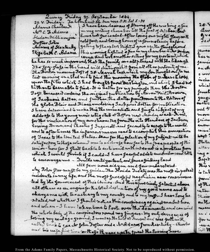 View full, authoritative transcriptions with page images of the diaries at John Quincy Adams Digital Diary part of the Primary Source Cooperative at the MHS.