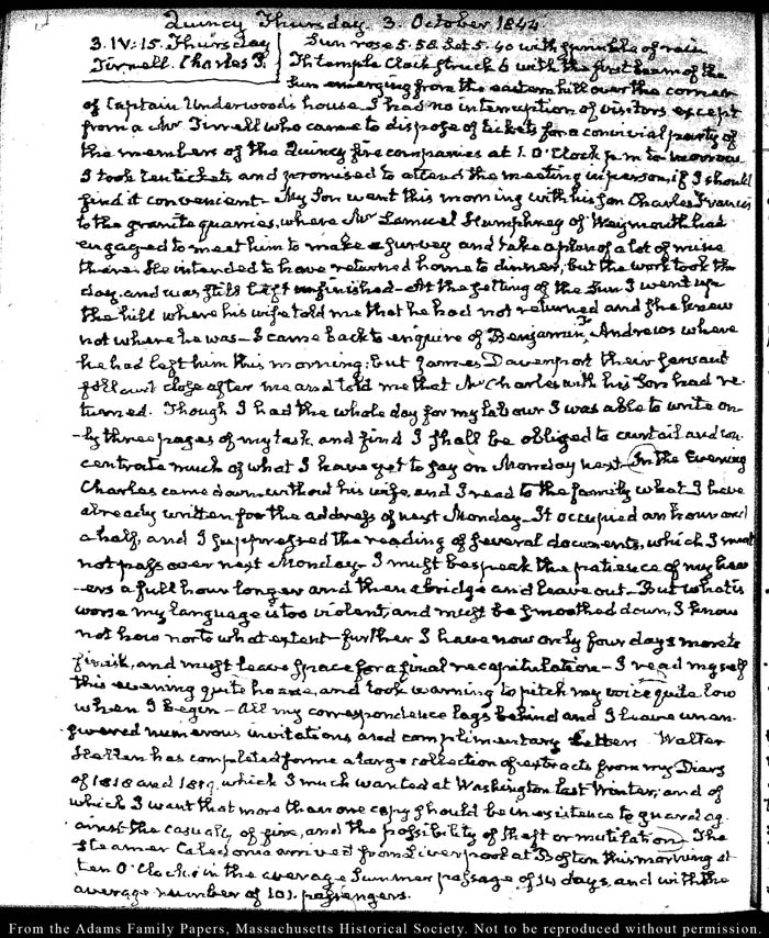 View full, authoritative transcriptions with page images of the diaries at John Quincy Adams Digital Diary part of the Primary Source Cooperative at the MHS.