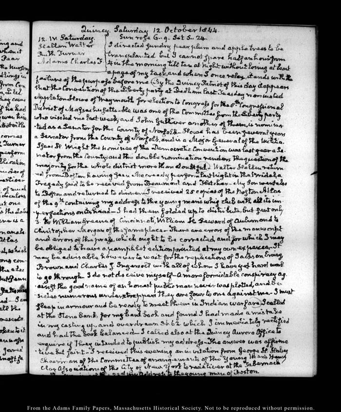 View full, authoritative transcriptions with page images of the diaries at John Quincy Adams Digital Diary part of the Primary Source Cooperative at the MHS.