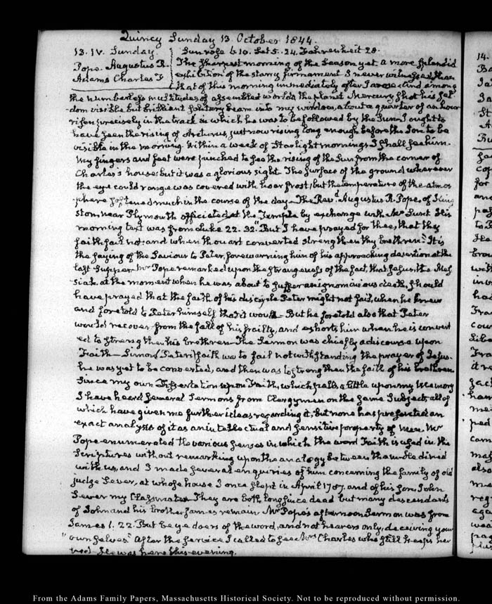 View full, authoritative transcriptions with page images of the diaries at John Quincy Adams Digital Diary part of the Primary Source Cooperative at the MHS.