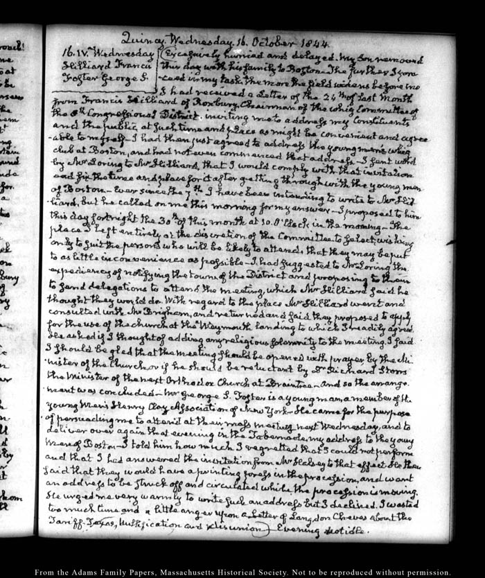 View full, authoritative transcriptions with page images of the diaries at John Quincy Adams Digital Diary part of the Primary Source Cooperative at the MHS.