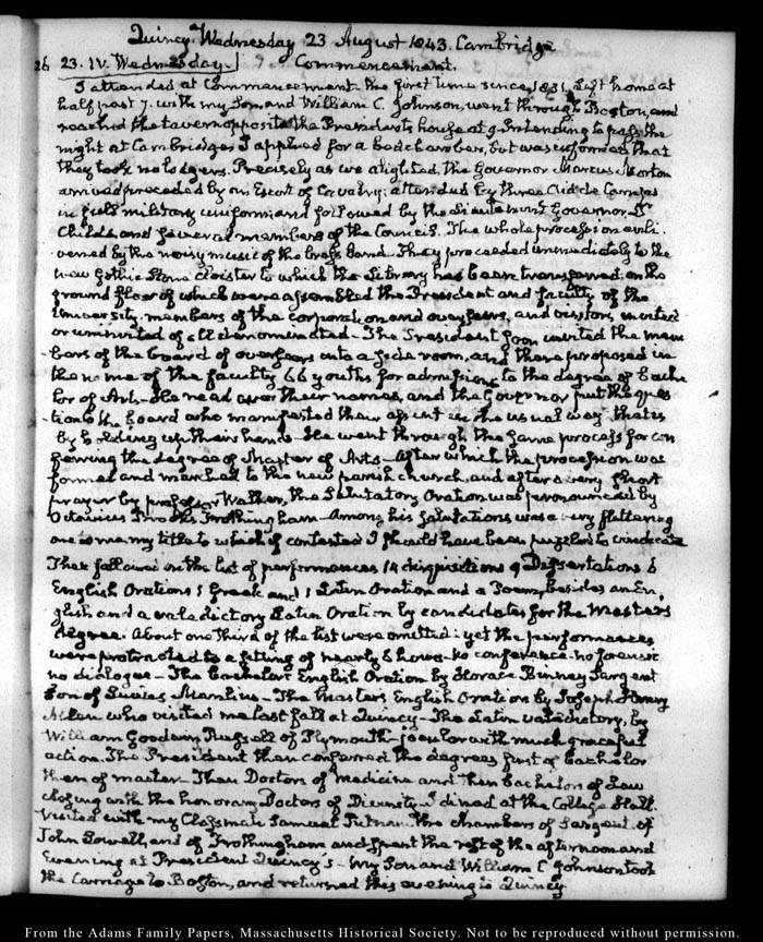 View full, authoritative transcriptions with page images of the diaries at John Quincy Adams Digital Diary part of the Primary Source Cooperative at the MHS.