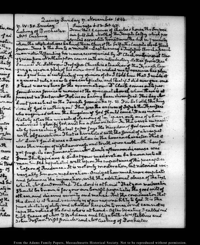 View full, authoritative transcriptions with page images of the diaries at John Quincy Adams Digital Diary part of the Primary Source Cooperative at the MHS.