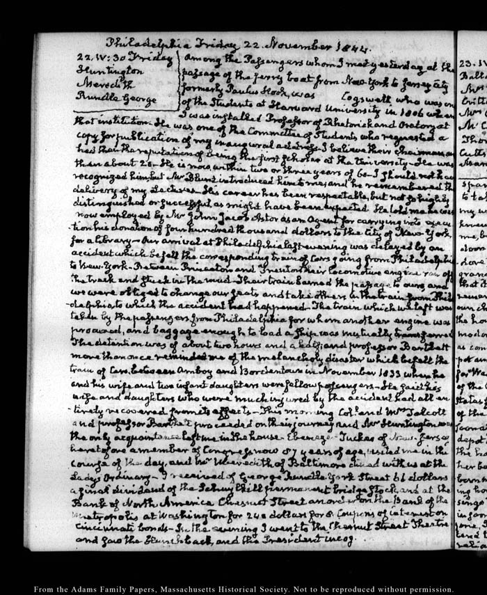 View full, authoritative transcriptions with page images of the diaries at John Quincy Adams Digital Diary part of the Primary Source Cooperative at the MHS.