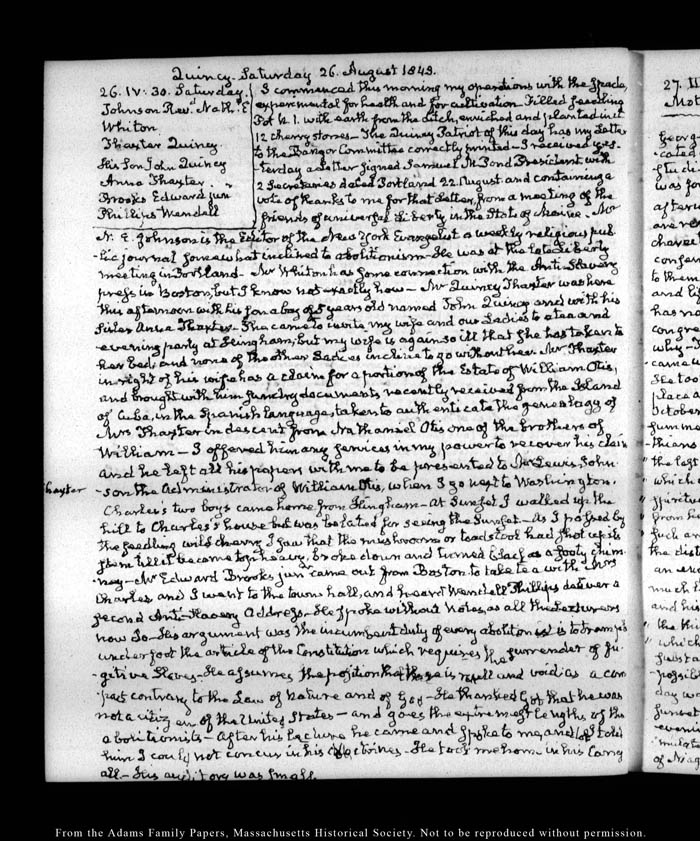 This is our legacy JQA diaries website and allows researchers to view the physical diaries page-by-page.