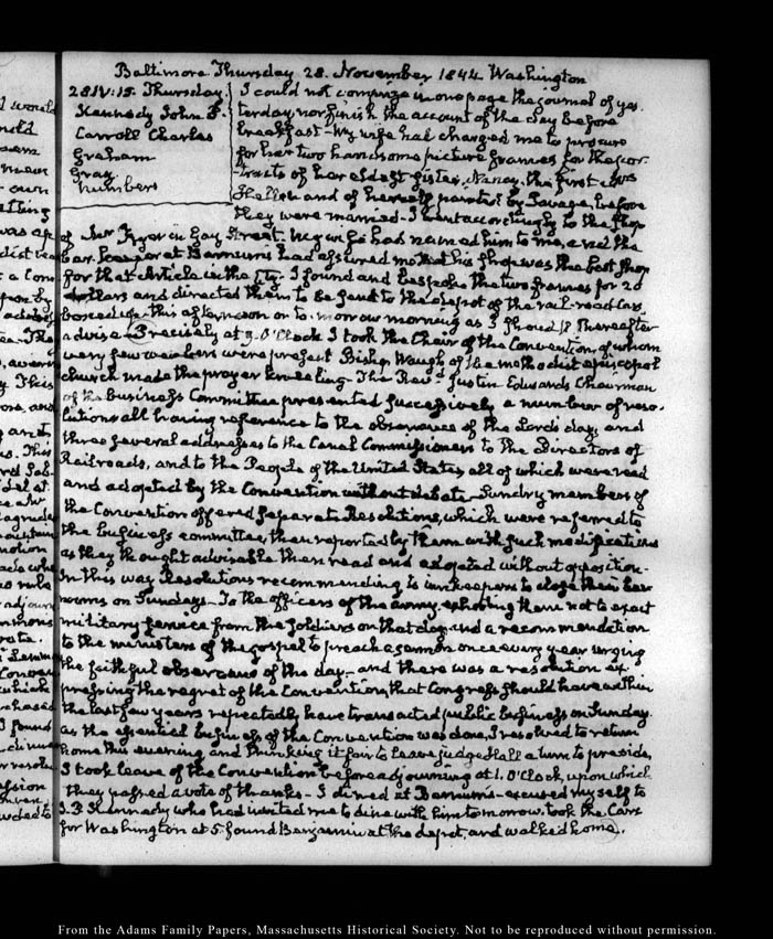 View full, authoritative transcriptions with page images of the diaries at John Quincy Adams Digital Diary part of the Primary Source Cooperative at the MHS.