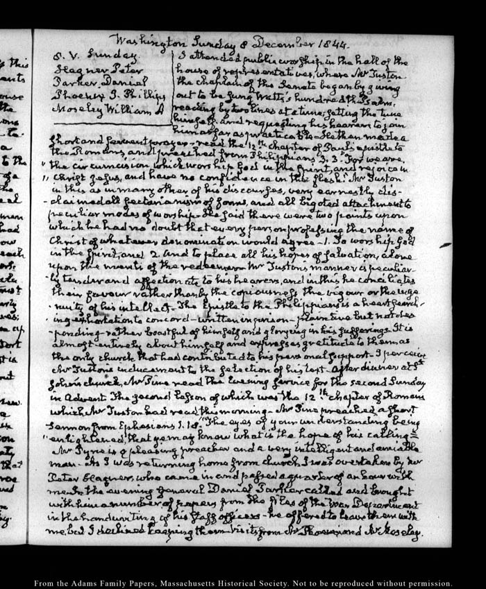 View full, authoritative transcriptions with page images of the diaries at John Quincy Adams Digital Diary part of the Primary Source Cooperative at the MHS.