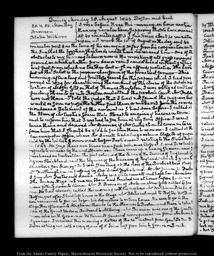 View full, authoritative transcriptions with page images of the diaries at John Quincy Adams Digital Diary part of the Primary Source Cooperative at the MHS.
