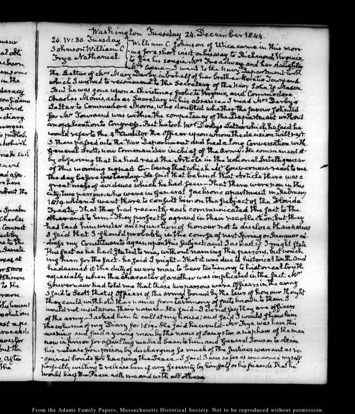 View full, authoritative transcriptions with page images of the diaries at John Quincy Adams Digital Diary part of the Primary Source Cooperative at the MHS.