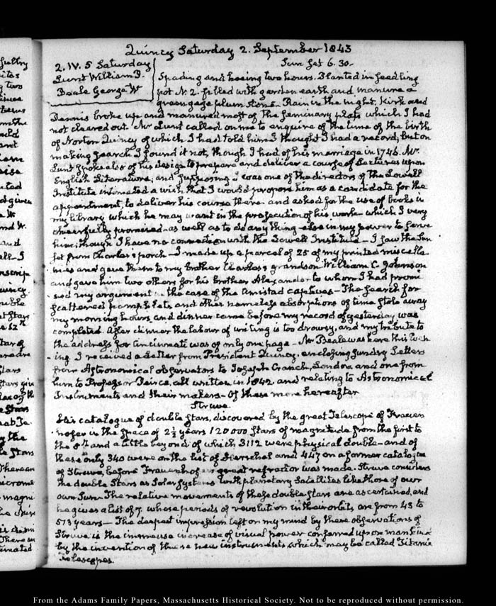 View full, authoritative transcriptions with page images of the diaries at John Quincy Adams Digital Diary part of the Primary Source Cooperative at the MHS.