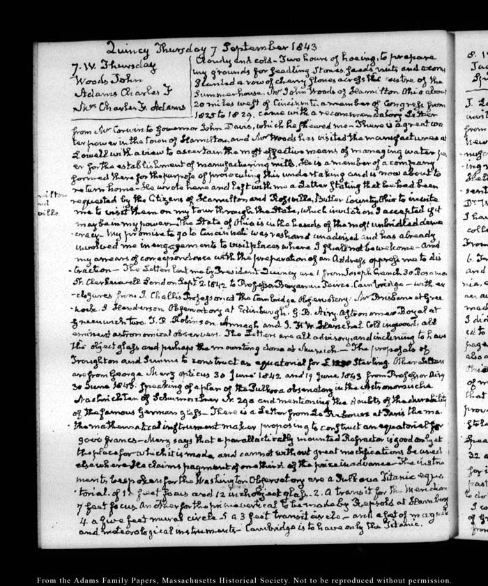 View full, authoritative transcriptions with page images of the diaries at John Quincy Adams Digital Diary part of the Primary Source Cooperative at the MHS.