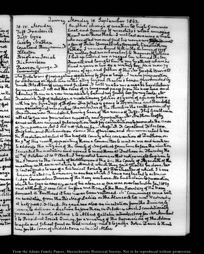 This is our legacy JQA diaries website and allows researchers to view the physical diaries page-by-page.