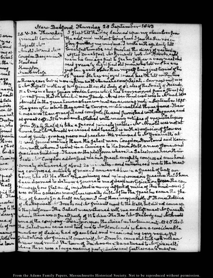 View full, authoritative transcriptions with page images of the diaries at John Quincy Adams Digital Diary part of the Primary Source Cooperative at the MHS.