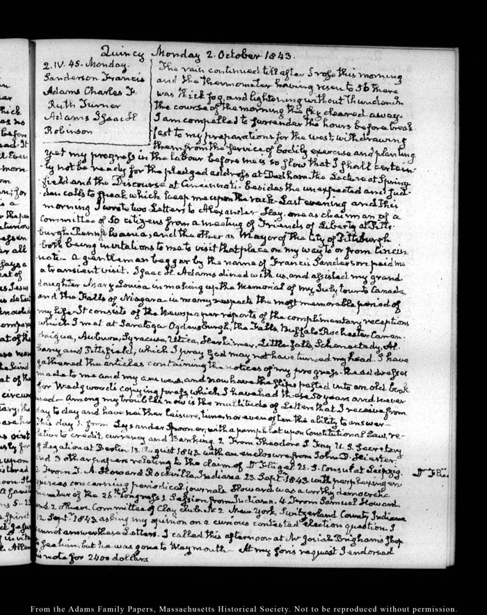 View full, authoritative transcriptions with page images of the diaries at John Quincy Adams Digital Diary part of the Primary Source Cooperative at the MHS.