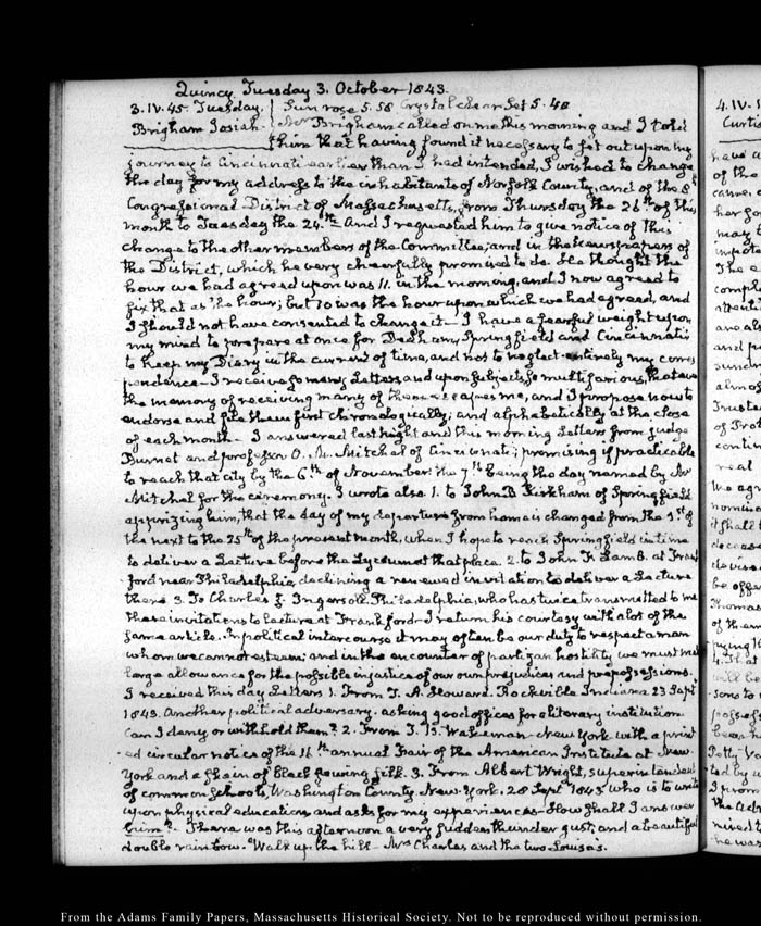 View full, authoritative transcriptions with page images of the diaries at John Quincy Adams Digital Diary part of the Primary Source Cooperative at the MHS.
