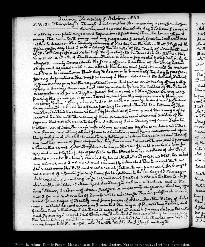 View full, authoritative transcriptions with page images of the diaries at John Quincy Adams Digital Diary part of the Primary Source Cooperative at the MHS.