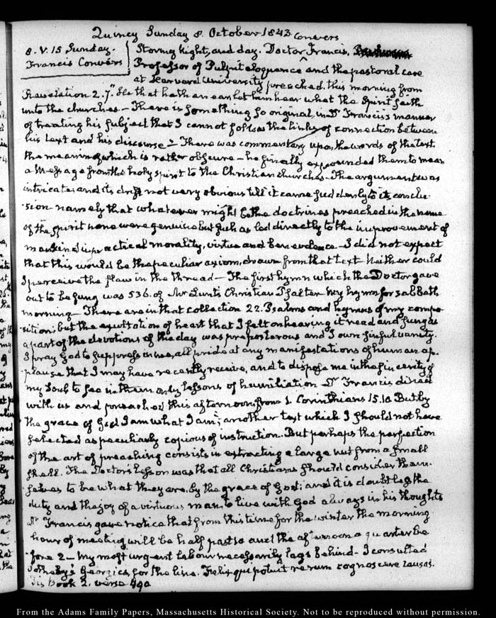 View full, authoritative transcriptions with page images of the diaries at John Quincy Adams Digital Diary part of the Primary Source Cooperative at the MHS.