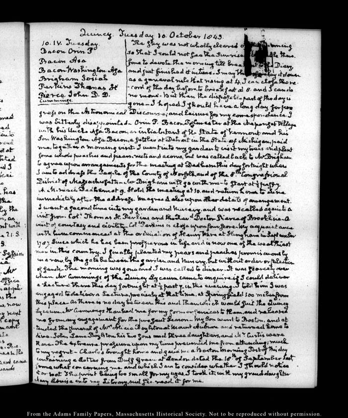View full, authoritative transcriptions with page images of the diaries at John Quincy Adams Digital Diary part of the Primary Source Cooperative at the MHS.