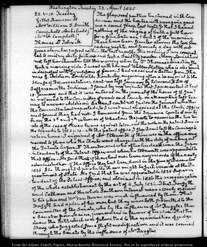 View full, authoritative transcriptions with page images of the diaries at John Quincy Adams Digital Diary part of the Primary Source Cooperative at the MHS.